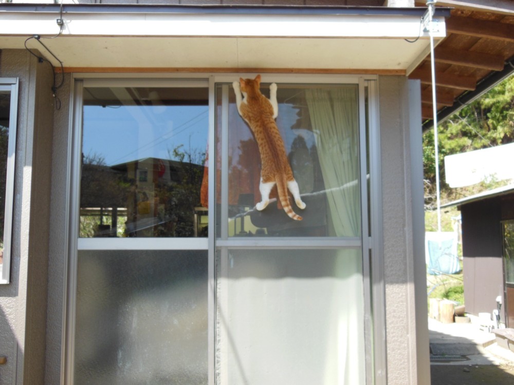 開けてくれるまで登っている様子です。